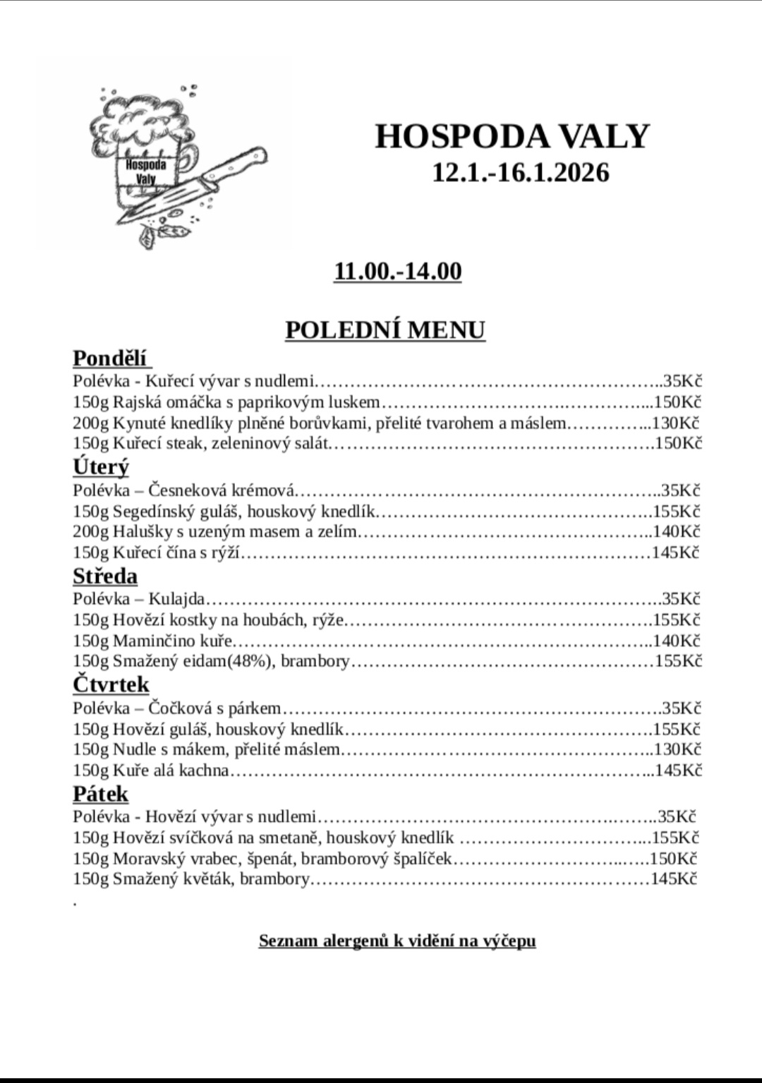 Polední Menu